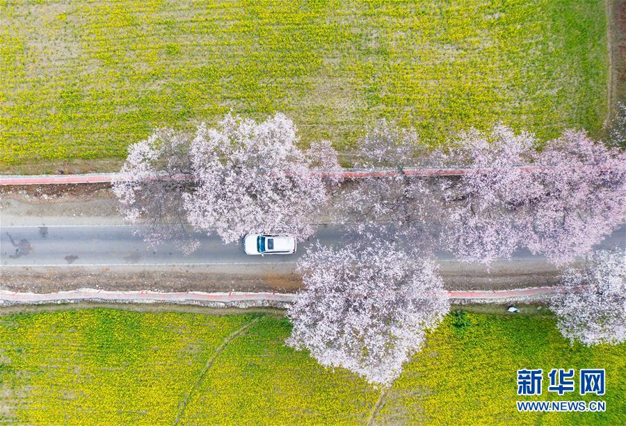 3月26日,西藏林芝境内盛开的桃花(无人机照片)。新华社记者 孙非 摄