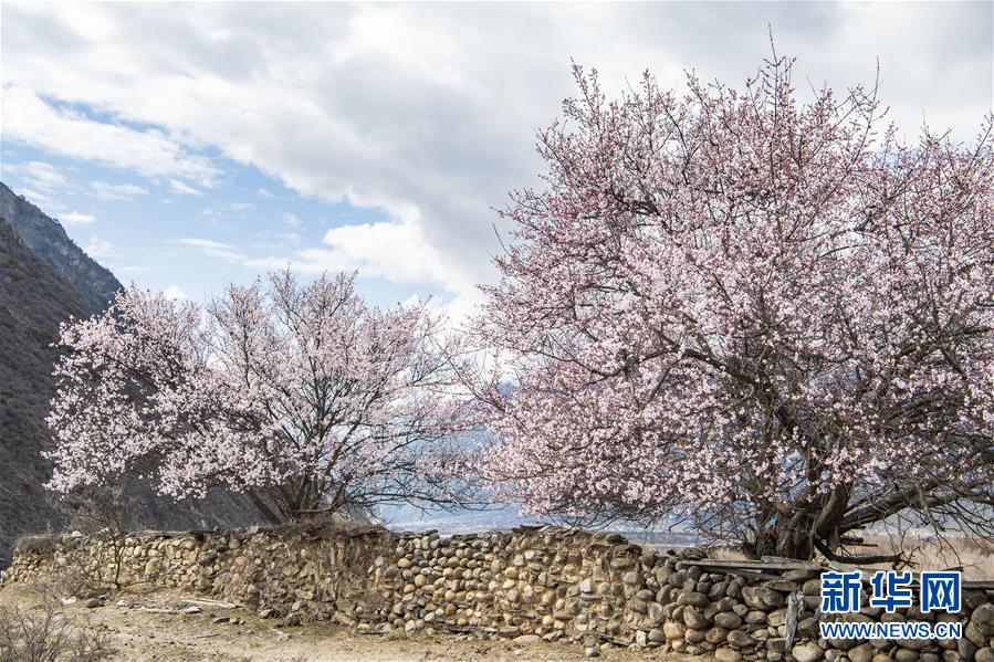 这是3月26日拍摄的西藏林芝市波密县境内桃花盛开的田园风光。新华社记者 孙非 摄