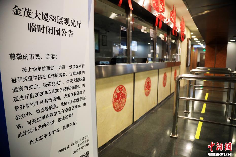 金茂大厦观光厅售票处今起关闭。 汤彦俊 摄