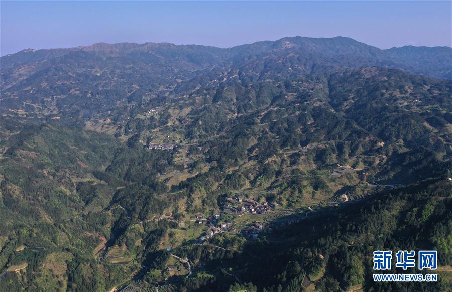 这是融水苗族自治县杆洞乡小河村高羽苗寨的木楼和梯田(3月31日摄,无人机照片)。 随着气温逐渐转暖,广西融水苗族自治县杆洞乡的苗寨梯田景色迷人,美如画卷。 新华社记者 黄孝邦 摄