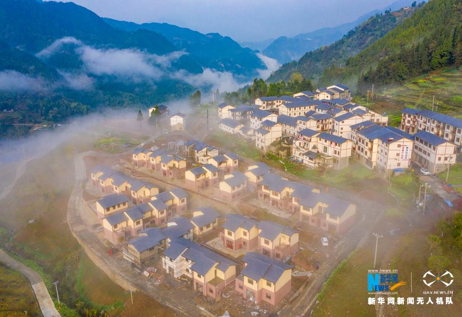 今年3月18日,重庆巫溪红池云乡旅游区获批为国家AAA级旅游景区,作为“红池云乡”组成部分的红池坝镇茶山村搭上农旅融合的发展“快车”。这是3月25日航拍的重庆市巫溪县茶山村全景。新华网发(王强 摄)