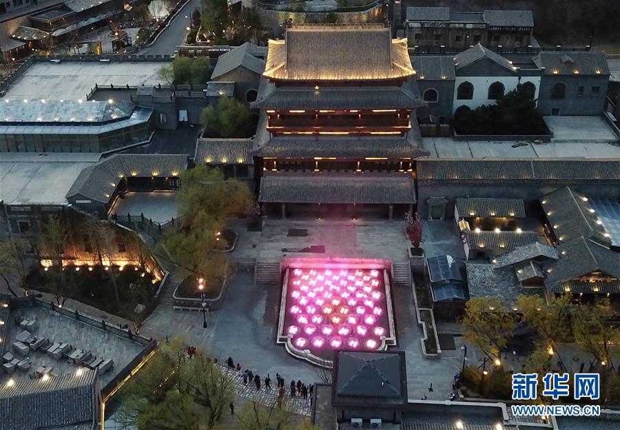 这是4月23日拍摄的古北水镇景区(无人机照片)。 古北水镇景区与北京司马台长城毗邻,山水城相结合,民房错落有致,老街悠长蜿蜒,从空中俯瞰,别有一番风情。 新华社记者 张晨霖 摄