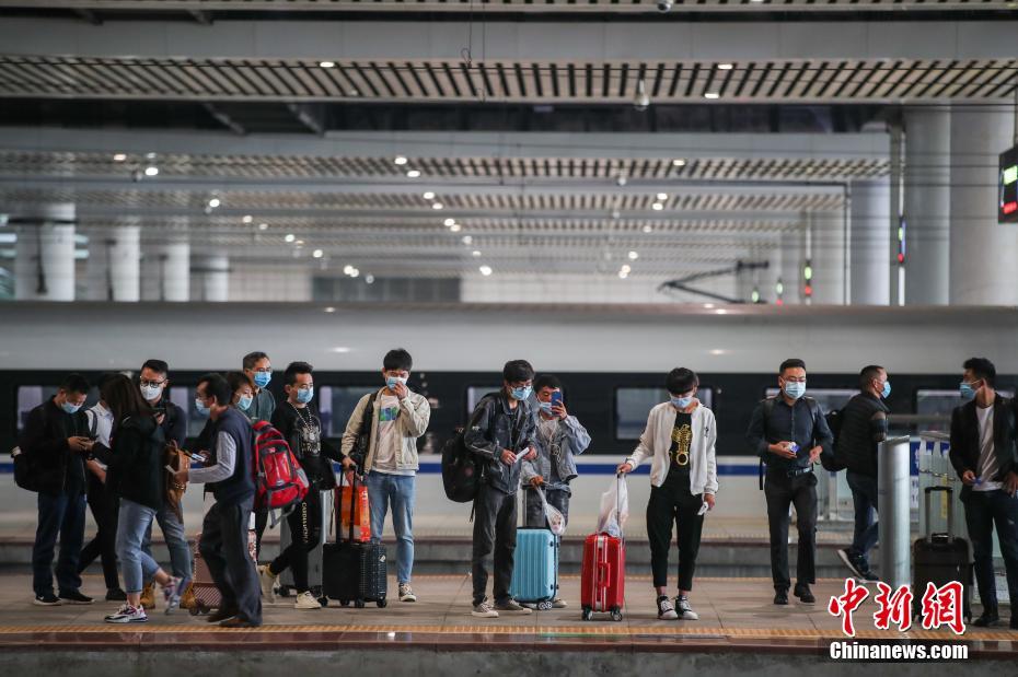 旅客在贵阳北站站台候车。中新社记者 瞿宏伦 摄