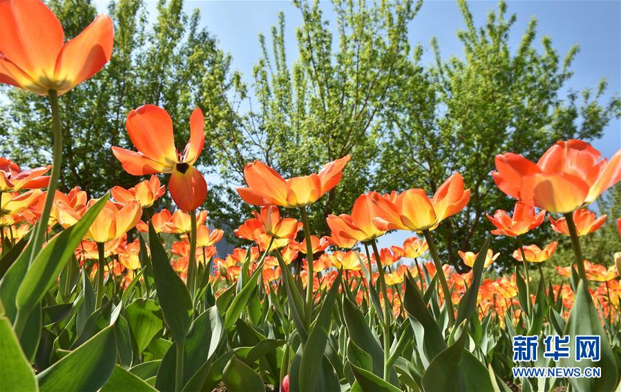 这是5月10日在长春市长春公园拍摄的郁金香。 连日来,随着气温不断升高,长春公园里50余个品种的郁金香竞相绽放,吸引市民前往观赏。 新华社记者 林宏 摄