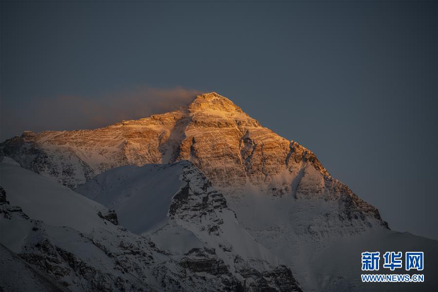 20时50分,落日余晖洒在珠峰峰顶(5月4日摄)。 新华社记者 孙非 摄