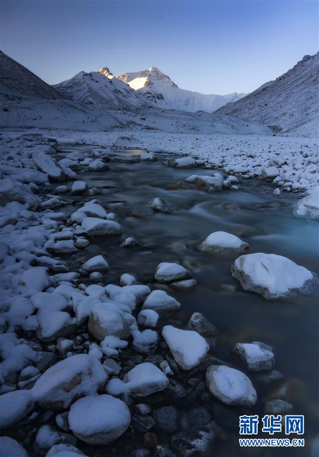 8时42分,珠峰脚下的绒布河水流静谧(5月3日摄)。新华社记者 普布扎西 摄