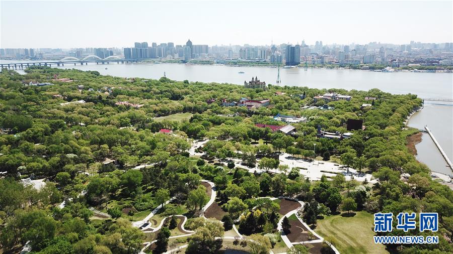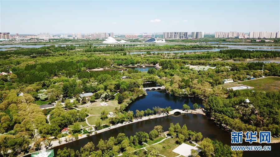 这是5月13日拍摄的哈尔滨太阳岛风景区附近的一处湿地(无人机照片)。 时下,“国际湿地城市”黑龙江省哈尔滨市各处湿地绿意渐浓,展现出“万顷松江湿地,百里生态长廊”的壮阔画卷。 新华社记者 王建威 摄