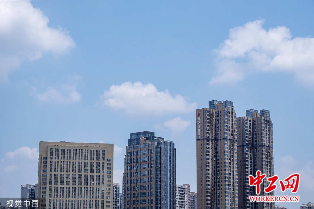 2020年6月4日,武汉迎来晴好天气,湛蓝的天空白云朵朵,描绘出城市夏季美景。图片来源:视觉中国