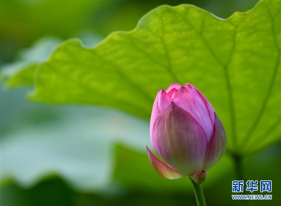 6月21日,在福州茶亭公园荷花塘里,一朵荷花含苞待放。 当日是夏至节气。在福建省福州市以荷花为主题的古典园林茶亭公园里,荷花绽放,蜜蜂和鸟类飞舞花丛中,宛如炎炎夏日里的一幅写意花鸟画卷。 新华社记者魏培全摄