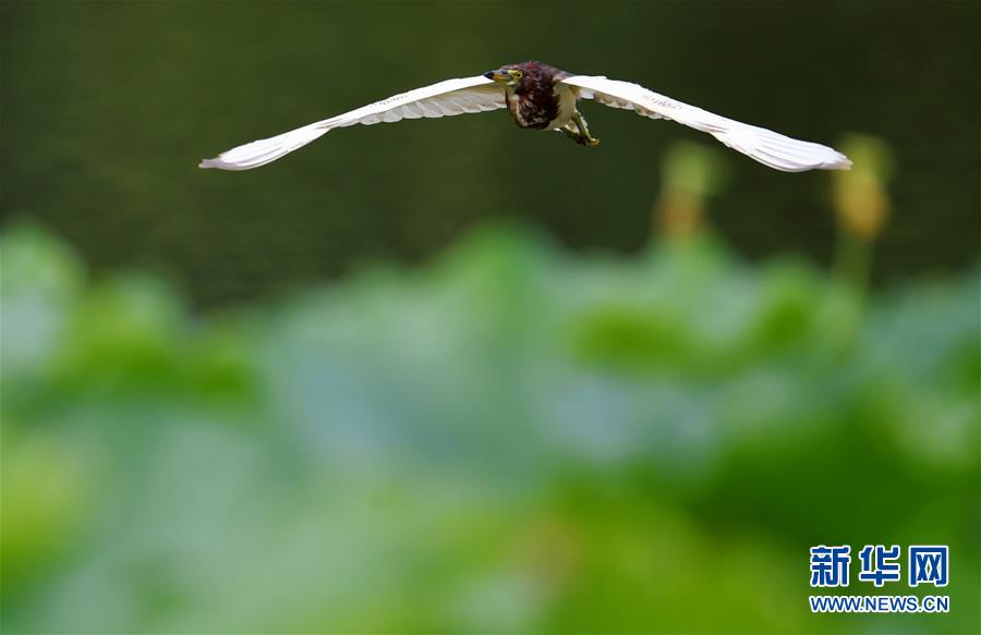 6月21日,一只池鹭在福州茶亭公园荷花塘里的荷花丛中觅食。 当日是夏至节气。在福建省福州市以荷花为主题的古典园林茶亭公园里,荷花绽放,蜜蜂和鸟类飞舞花丛中,宛如炎炎夏日里的一幅写意花鸟画卷。 新华社记者魏培全摄