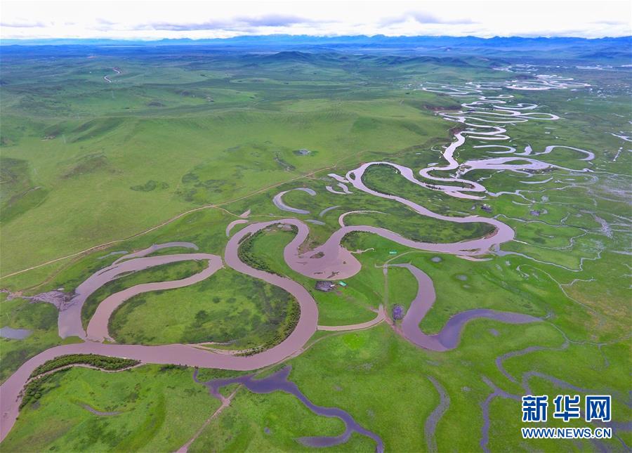 四川省阿坝藏族羌族自治州若尔盖县的热曲河风光(6月17日摄,无人机照片)。 新华社记者 刘坤 摄