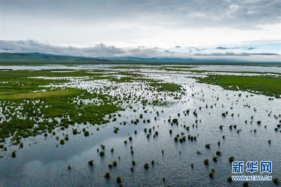 位于四川省阿坝藏族羌族自治州若尔盖县西北部的花湖生态旅游区(6月16日摄,无人机照片)。 新华社记者 沈伯韩 摄