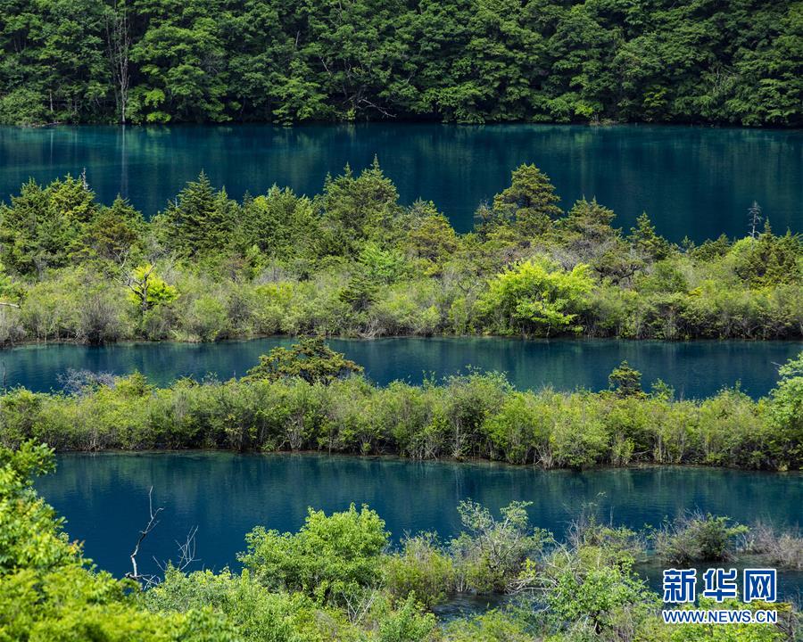九寨沟风景名胜区内的“树正群海”(6月18日摄)。九寨沟近年来持续推进造林、封山育林、沙化土地治理等多项生态涵养工程,在加快九寨沟世界自然遗产抢救修复和恢复保护的同时,最大程度维护了自然遗产地的原真性和完整性。新华社记者 沈伯韩 摄