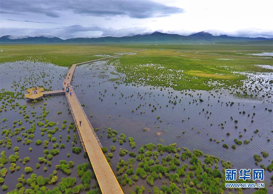 四川省阿坝藏族羌族自治州若尔盖县的花湖生态旅游区风光(6月16日摄,无人机照片)。 新华社记者 刘坤 摄