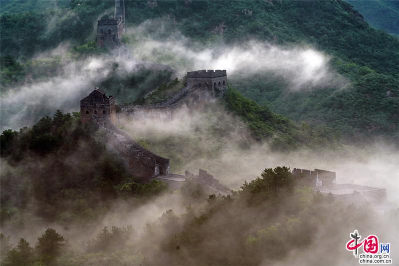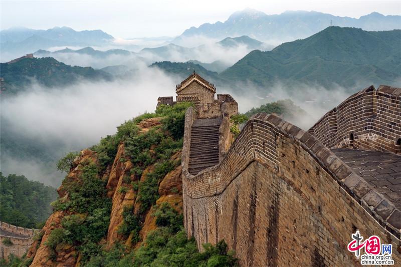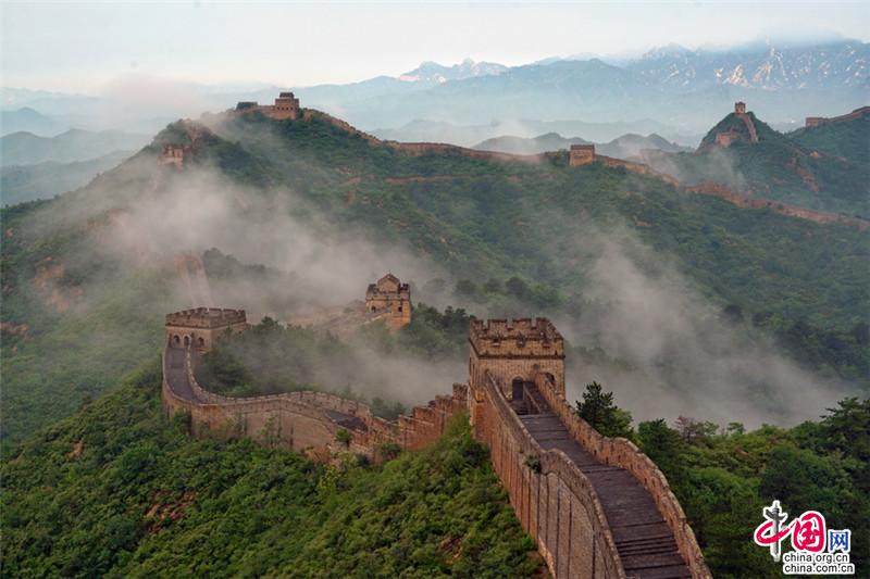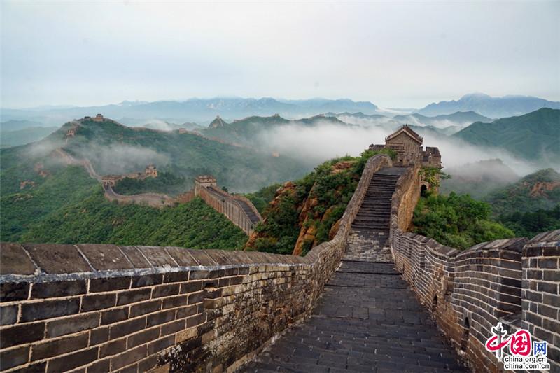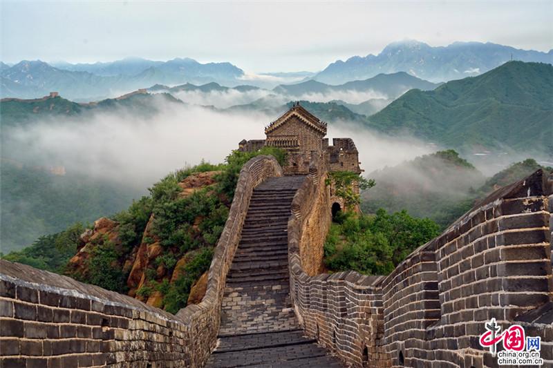 金山岭长城四季美景,春天山花烂漫,处处飘香;盛夏绿色浓郁,云雾飘渺;金秋飞黄流丹,层林尽染;严冬银装素裹,童话世界。夏日雨后,相约金山岭,邂逅云海中的长城。在将军楼遥望望京楼,眼前是“横看成峰侧成岭远近高低各不同”,思绪是时空跨越,令人浮想联翩。