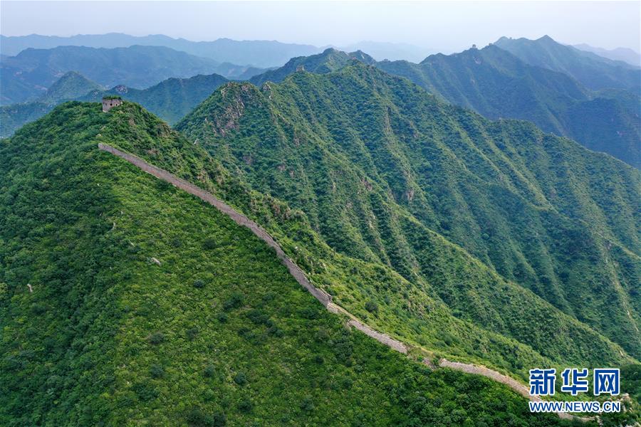 这是7月13日拍摄的河北省迁安市红峪口长城(无人机照片)。 盛夏时节,位于河北省迁安市的红峪口长城两侧树木葱郁。巍峨的长城与连绵的山岭相映衬,风光壮美。 新华社记者 牟宇 摄