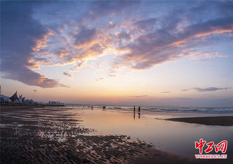 山东烟台:金沙滩雨后晚霞绚烂多彩