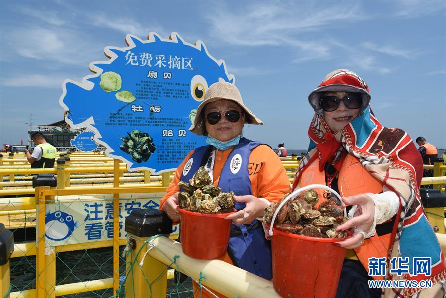 7月17日,游客在荣成桑沟湾泓泰国家级海洋牧场观光体验。 近年来,山东省荣成市重点发展特色海洋旅游产业,打造众多国家级海洋牧场,保留修复传统海草民居,吸引游客前来观光体验。如今特色海洋旅游已逐渐成为荣成经济发展新的增长点。 新华社记者 王凯 摄