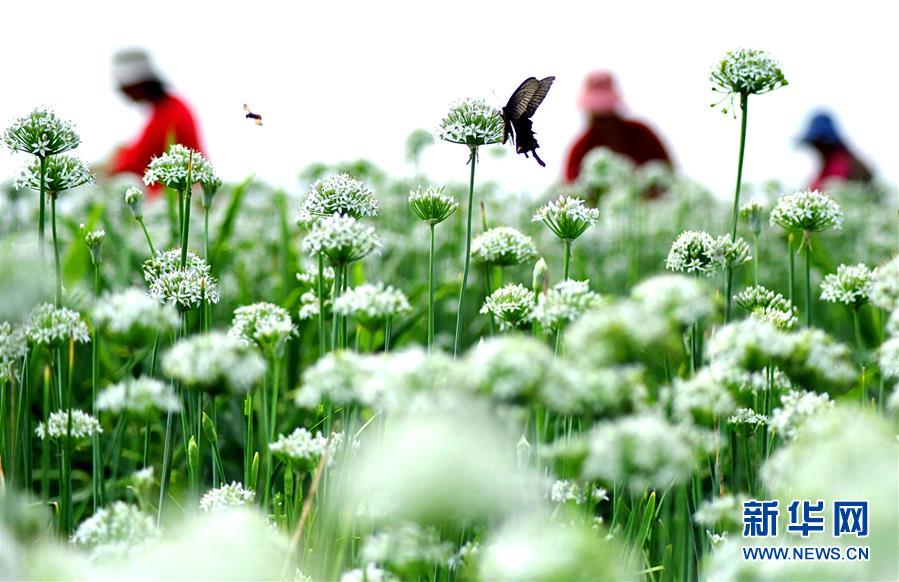 8月29日,山东省淄博市沂源县悦庄镇黄山子村的农民在田间采摘韭菜花。 初秋时节,山东省淄博市沂源县农民种植的万亩韭菜迎来盛花期,当地农民加紧采摘韭菜花销往各地。近年来,无公害韭菜种植成为当地农民增收致富的特色产业之一。 新华社发(赵东山 摄)