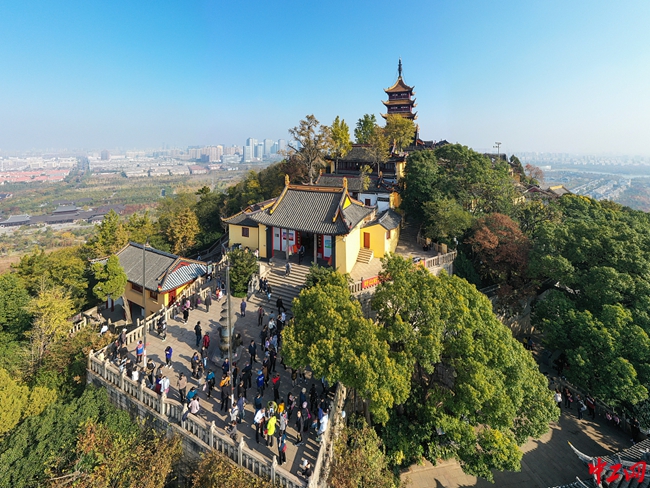江苏南通:航拍狼山秋色 景美醉游人