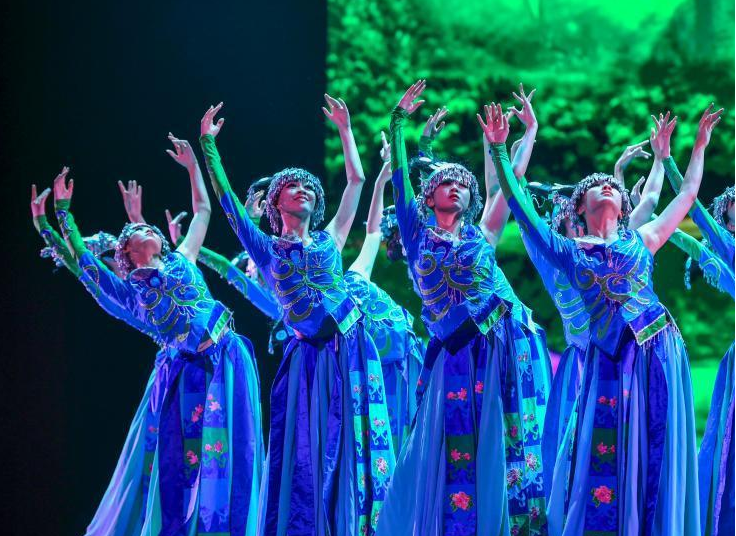11月22日晚,2019年(第二十届)海南国际旅游岛欢乐节在海南海口开幕。本届欢乐节包括开幕式在内的17项主要活动将一直持续至12月31日,并推出节庆会展、文艺演艺、体育赛事等200余项丰富多彩的活动。图为欢乐节开幕式上表演的舞蹈《水姑娘》。