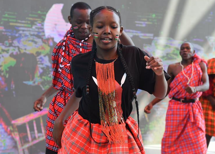 9月3日,演员在“肯尼亚国家日”活动中进行文艺表演。 当日,2019年中国北京世界园艺博览会“肯尼亚国家日”活动在北京世园会园区举行。