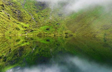 朗吉错湖位于西藏日喀则市吉隆县吉隆镇,四周山峰秀丽雄伟,湖面清晰的映像与群山构成了大自然的美丽画卷。