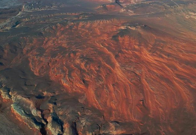 新疆托克逊县是一个浓缩了地质奇观的博物馆,走进该县克尔碱镇的天山红河谷,从空中俯瞰,壮美苍茫。
