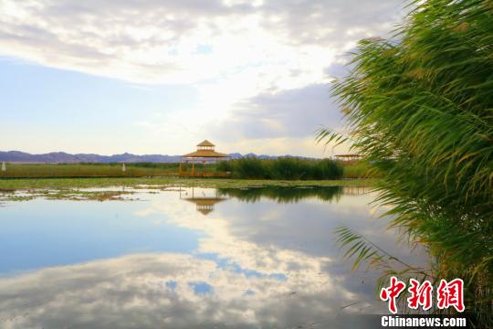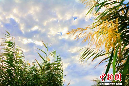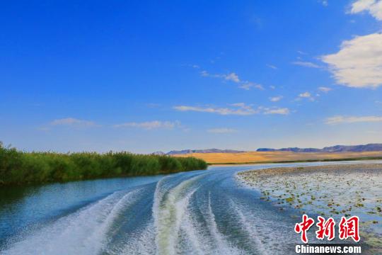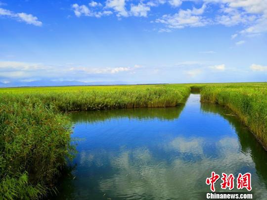 天水合一,碧蓝一片,中间夹杂着芦苇的绿,景色大好。 王陆斌 摄