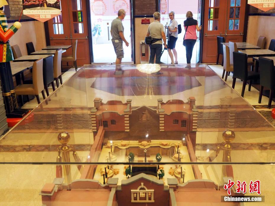 香港西港城底层是一个商场,中间放置了一个西港城的模型。不少游客慕名而来感受老香港的情怀。中新社记者 洪少葵 摄
