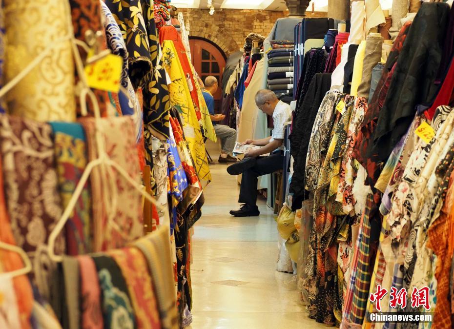 香港西港城场内部分商铺原为附近一带的老字号,当中包括古玩、特色手工艺品店及数间食肆。2楼的布匹专卖店,皆从已迁拆的花布街(中环中心现址)搬迁至西港城。中新社记者 洪少葵 摄