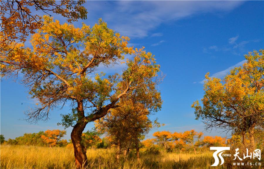 乌尔禾30万亩胡杨林披金装成斑斓世界