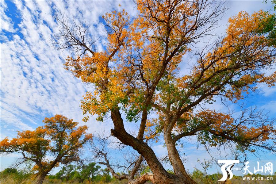 乌尔禾30万亩胡杨林披金装成斑斓世界