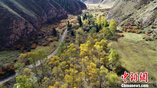 图为甘肃肃南秋意渐浓,金色满城。 朵丹 摄