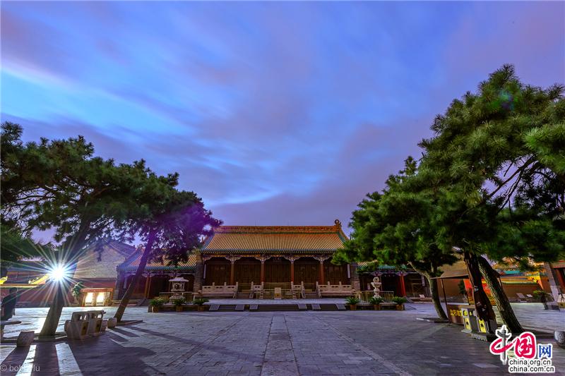 沈阳老城内的大街呈“井”字形,而故宫就设在“井”字形大街的中心,整座皇宫楼阁林立,殿宇巍峨,雕梁画栋,富丽堂皇。大政殿是一座八角重檐亭式建筑,正门有两根盘龙柱,以示庄严。大政殿用于举行大典,如皇帝即位,颁布诏书,宣布军队出征,迎接将士凯旋等。