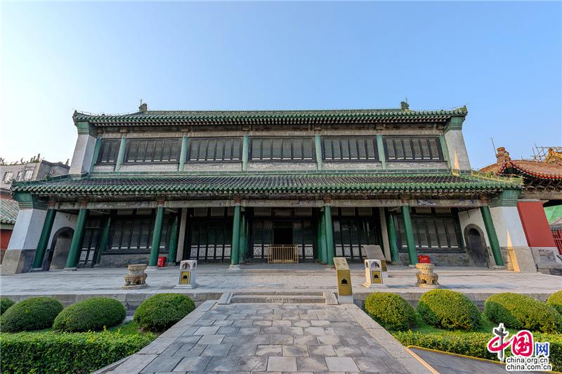 有意思的是在故宫里有一座有别于其他建筑颜色的大殿,大体呈绿色。而且屋顶也不是常用的黄琉璃瓦镶以绿色剪边,而是黑琉璃瓦绿剪边的。因内藏《四库全书》,便取名为“文溯阁”,取“溯涧求本”之意。