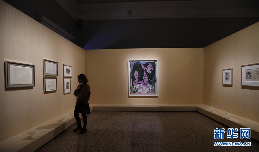 10月24日,在意大利米兰,一名女子参观“毕加索·变形记”展。 新华社记者程婷婷摄