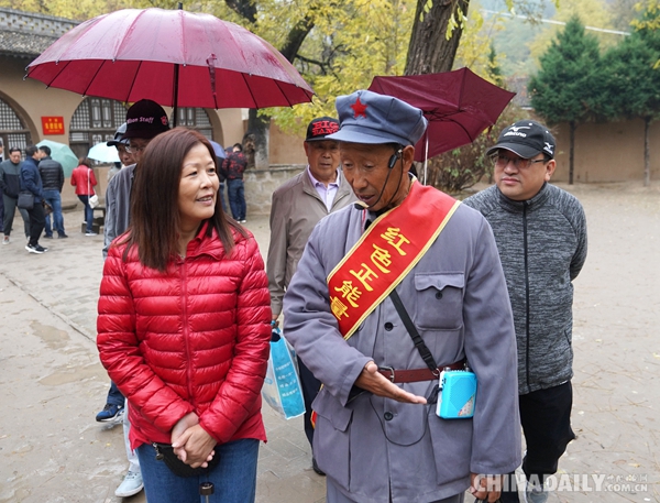 延安枣园革命旧址内,一名志愿讲解员在为来访者讲述革命历史。(中国日报 火炎 摄)