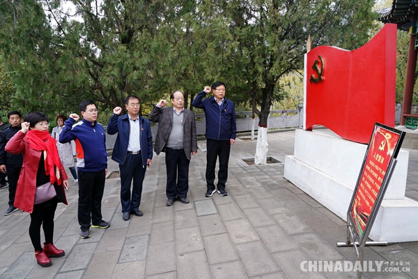 延安宝塔山上的入党宣誓仪式。(中国日报 火炎 摄)