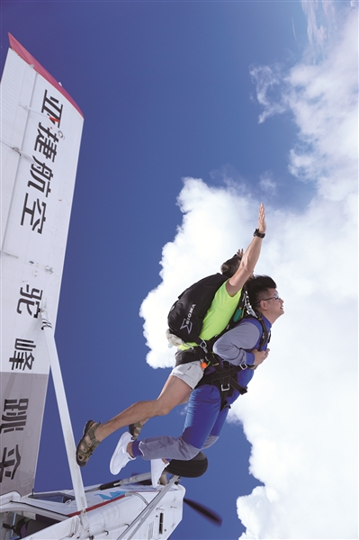高空跳伞是航空小镇最火爆的项目之一。自去年7月该项目启动以来,跳伞人数已经超过了3000人。驼峰高空跳伞负责人汤跃文介绍:“目前,每日可跳50人次的高空跳伞项目已全部排满,预约游客一直排到明年1月底。”