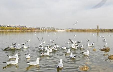 初冬时节,宁夏银川市迎来了越冬的红嘴鸥,吸引市民来到公园,观赏、喂食红嘴鸥。11月20日,市民在银川市海宝公园给红嘴鸥喂食。