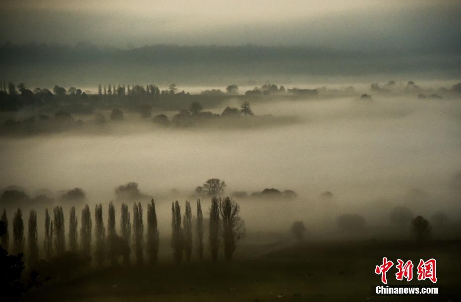 秋冬相交时节,欧洲多地呈现出斑斓景致,山野风光进入“童话时间”。图为深秋时节法国的雾中山乡。