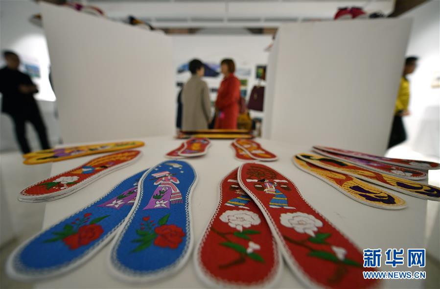 这是展出的土家族绣花鞋垫(11月22日摄)。