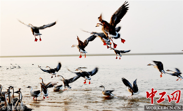 江西上饶:大批候鸟相继飞越鄱阳湖越冬