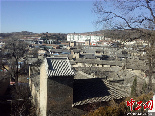 近处是四朝古建,远处是现代新居,新旧并存展示着上庄村的时代变迁。(中工网记者 郑鑫摄)