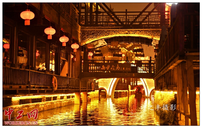 中工网讯 2019年1月12日晚,走进台儿庄古城。这里位于京杭大运河的中心点,坐落于山东省枣庄市台儿庄区。古城肇始于秦汉,发展于唐宋,繁荣于明清,有“天下第一庄”之称,也有“中国最美水乡”之誉。被世界旅游组织称为“活着的古运河”、“京杭运河仅存的遗产村庄”。工人日报-中工网许之丰摄影报道