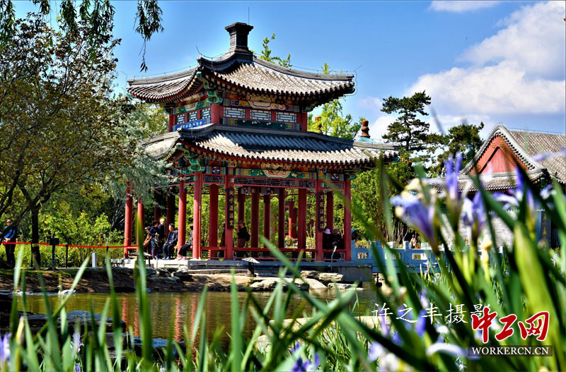 中国园林博物馆是中国第一座以园林为主题的国家级博物馆,位于北京市永定河畔。博物馆以主体建筑、室内展园和室外展区三部分组成。在室内有苏州“畅园”、扬州“片石山房”以及岭南“余荫山房”三座展园,以表现南方园林的特色。在室外的山地园林“染霞山房”、平地园林“半亩轩榭”和水景园林“塔影别苑”三个景色来表现北方特色的园林。图为2019年4月26日的中国园林博物馆。工人日报-中工网许之丰摄影报道