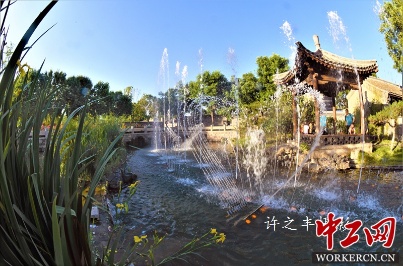 2019年5月21日,走进北京城市中心大栅栏地区的街心花园,这里以森林形态的植物景观为特色,将古建筑包裹在森林之中,仿古凉亭、青砖步道、各类花草环绕着曾经埋入地下几十年的古三里河,仿佛置身江南水乡。工人日报-中工网许之丰摄影报道
