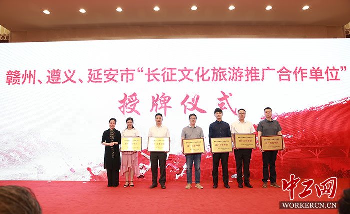 会上,赣州、遵义、延安以展演+推介的形式分别推介当地红色旅游,对长征文化旅游线路、主题活动、优惠政策等进行了发布,三地文化和旅游部门共同签订了《文化旅游合作框架协议》,就加强长征文化研究、旅游精品线路打造、红色文化载体交流、市场开发合作、旅游人才交流培训等方面达成共识,对有关旅行社、教育研学机构等授予“赣州、遵义、延安长征文化旅游推广合作单位”。