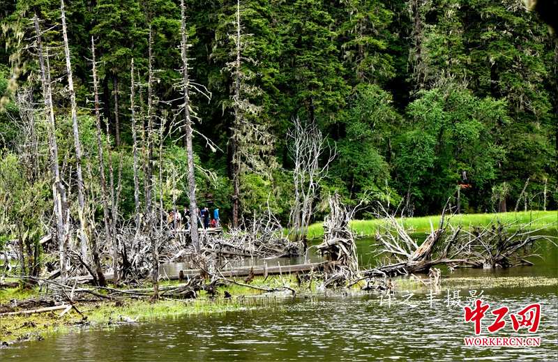 2019年7月13日,走进普达措原始森林,这里位于滇西北“三江并流”世界自然遗产中心地带,海拔在3500米至4159米之间,拥有地质地貌、湖泊湿地、森林草甸、河谷溪流、珍稀动植物等,原始生态环境保存完好。图为普达措原始森林。工人日报-中工网许之丰摄影报道